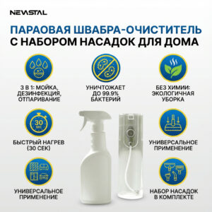 • Паровая швабра-очиститель с набором насадок для дома
